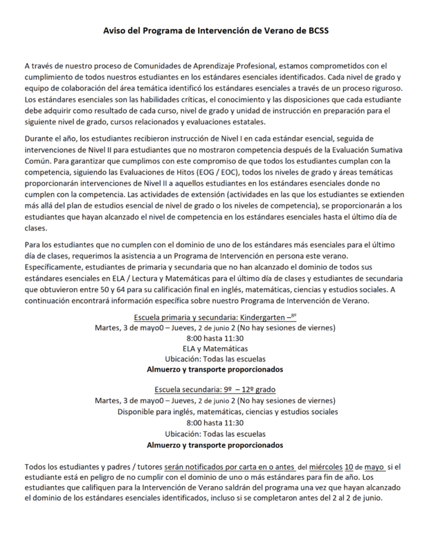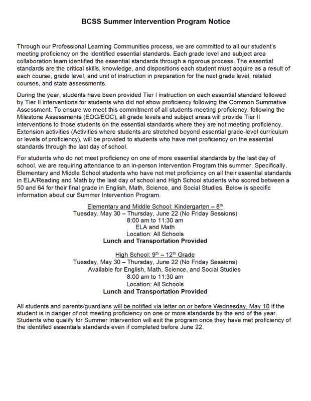 Summer Intervention Information