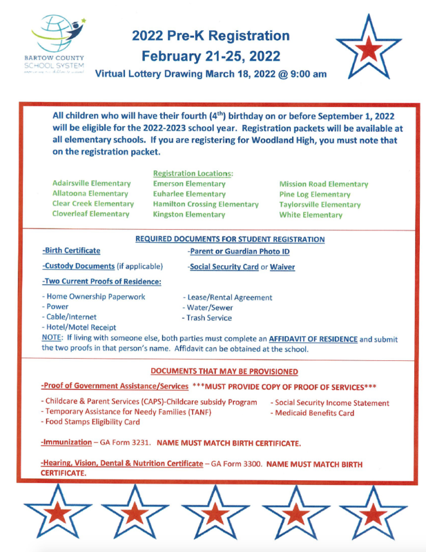 2022 Pre-K Registration Information